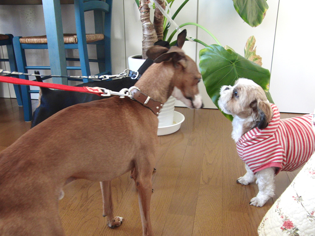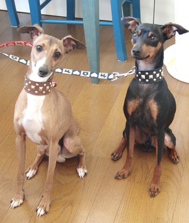 ミニチュアピンシャーのベルくん、イタリアングレーハウンドのプレオくんが遊びにきてくれました♪